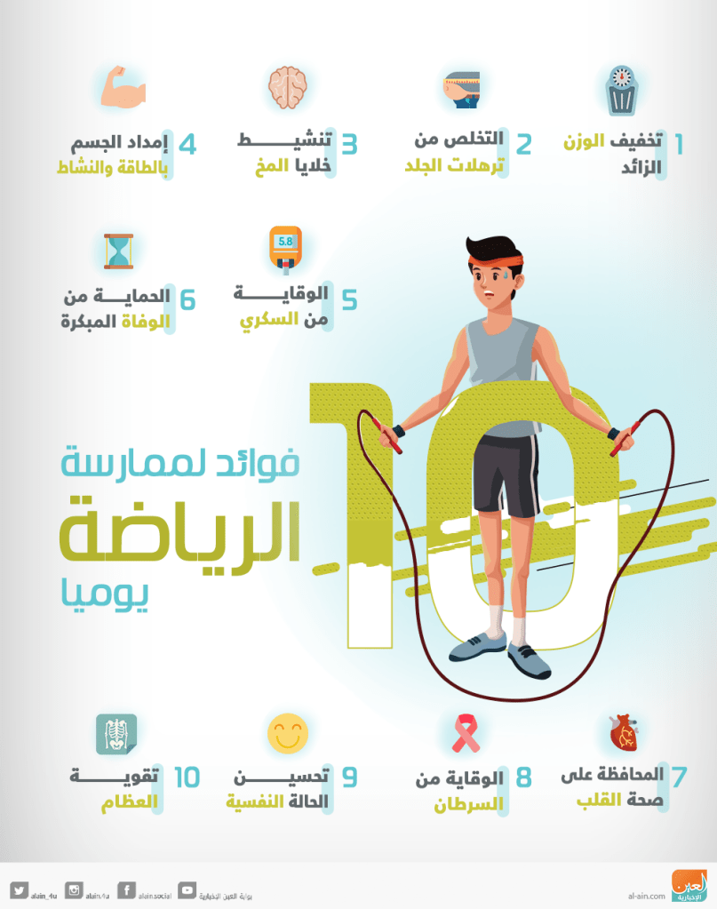 تعتبر الرياضة جهداً جسدياً عادياً أو مهارة تُمارس وفقاً لقواعد مُتفق عليها بهدف الترفيه، والاستمتاع، أو المنافسة، والتميز، وتقوية الثقة بالنفس، وبغض النظر عن الهدف الذي تُمارس الرياضة من أجله فهي تُزود الجسم بالعديد من الأمور المهمة والمُفيدة لصحته، كإمدادها للجسم باللياقة البدنية، والمظهر الجميل، وتحسين النفسية.